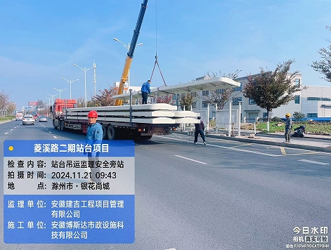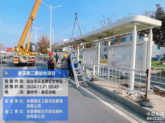 菱溪路二期(扬子-世纪大道)公交站台项目安装中